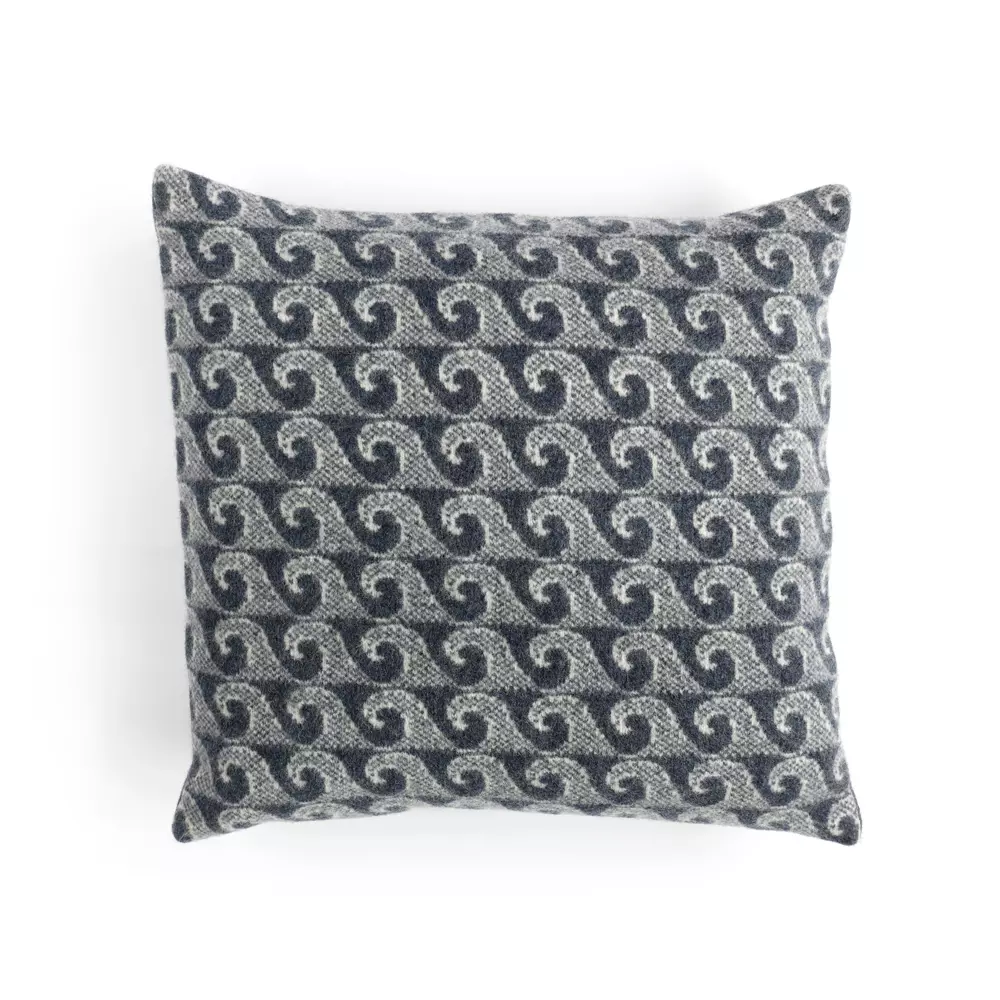 The Wight Wave cushion is inspired by the UK Maritime Shipping Forecast and handcrafted in our Brighton studio from soft lambswool in indigo and white hues.